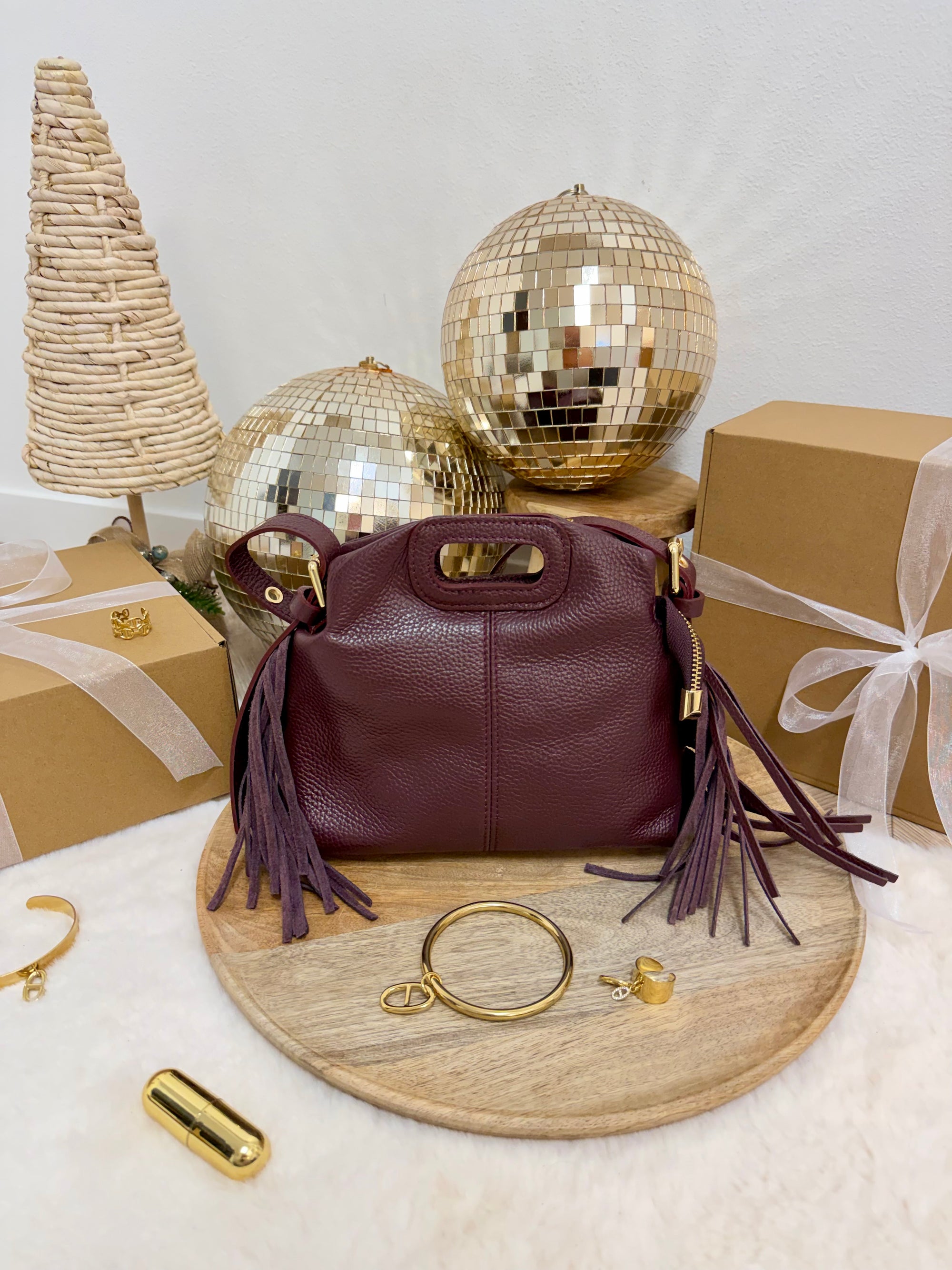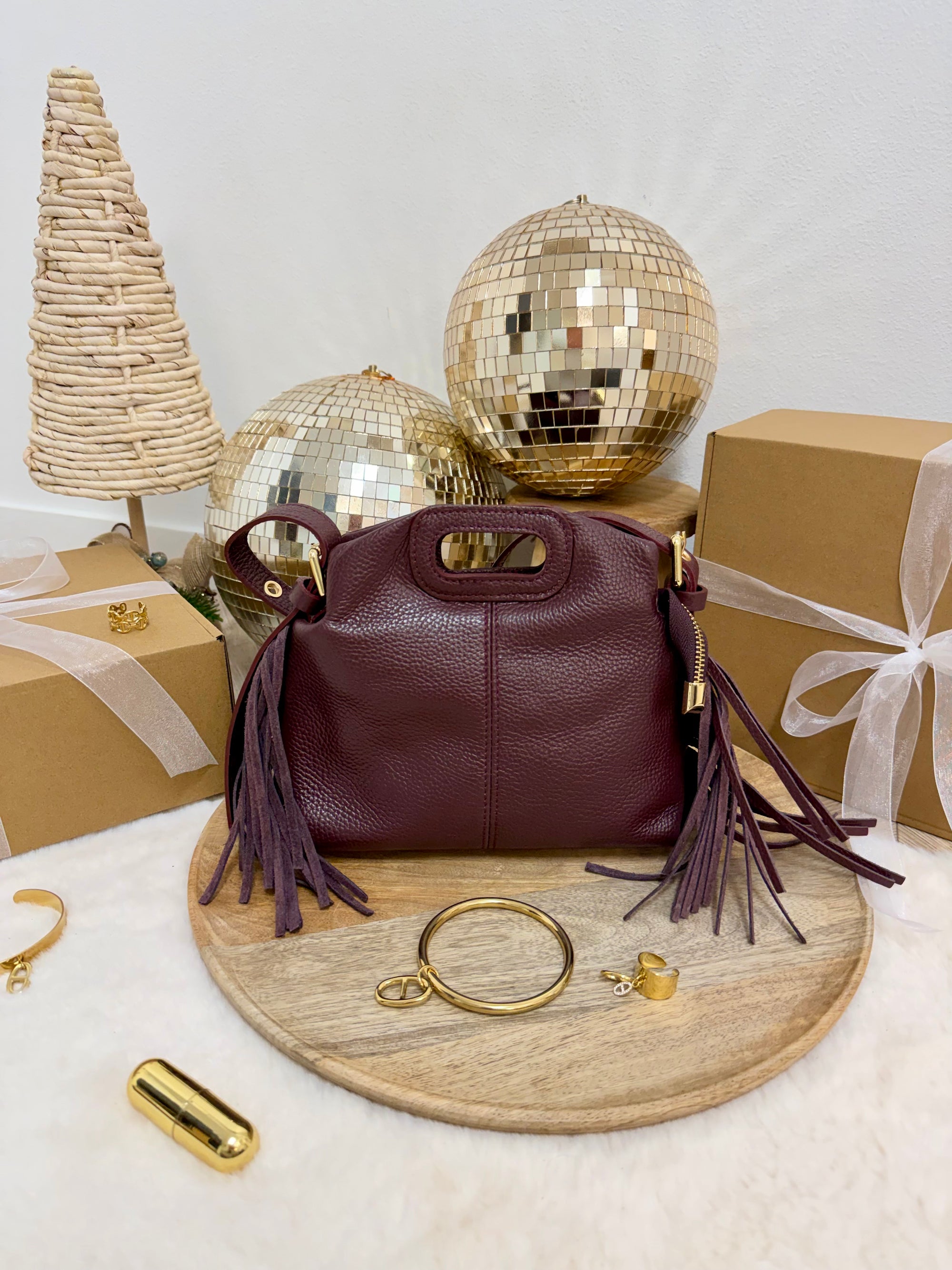 SAC DIANE CUIR GRAINÉ BORDEAUX S
