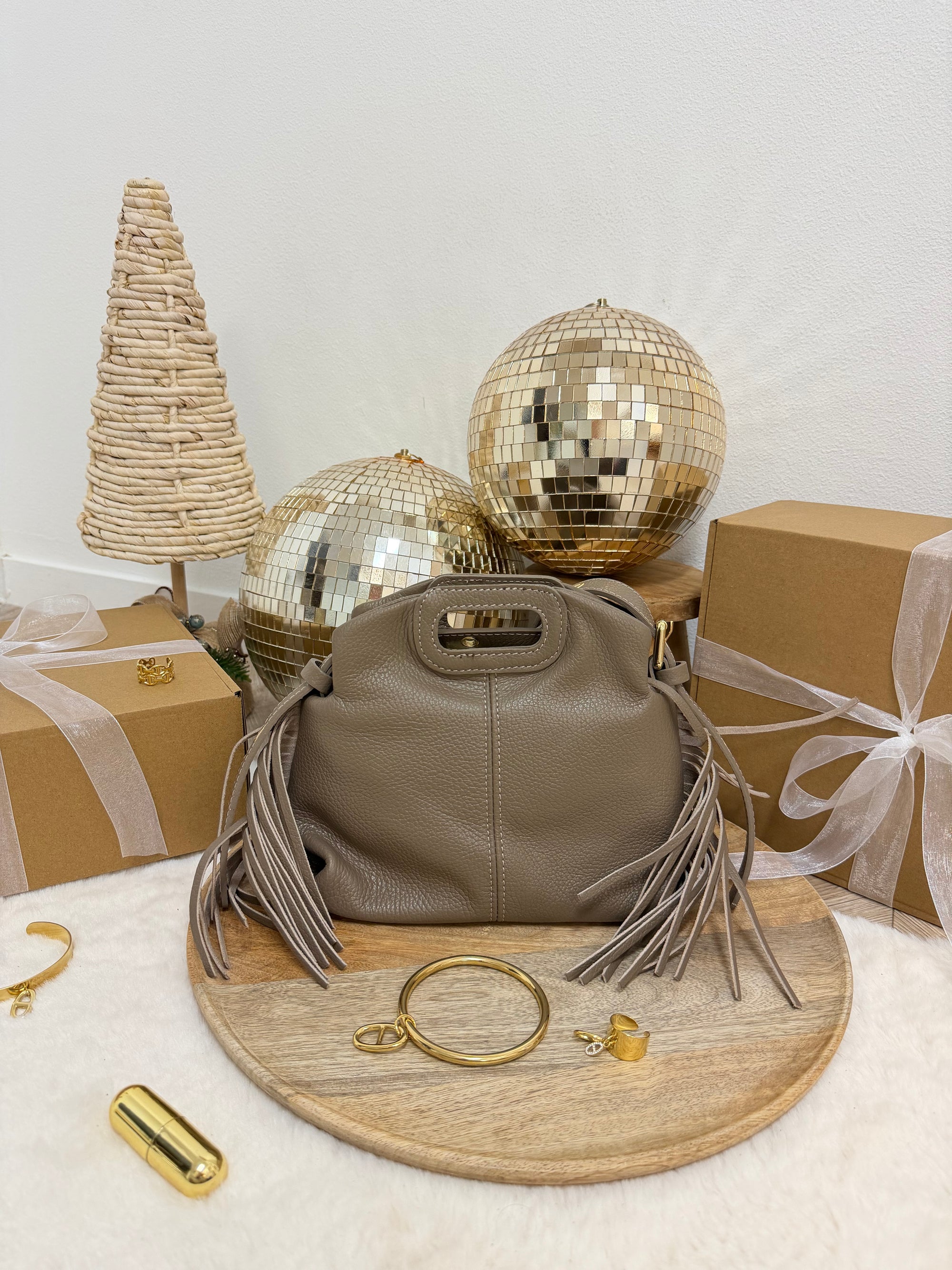 SAC DIANE CUIR GRAINÉ TAUPE S
