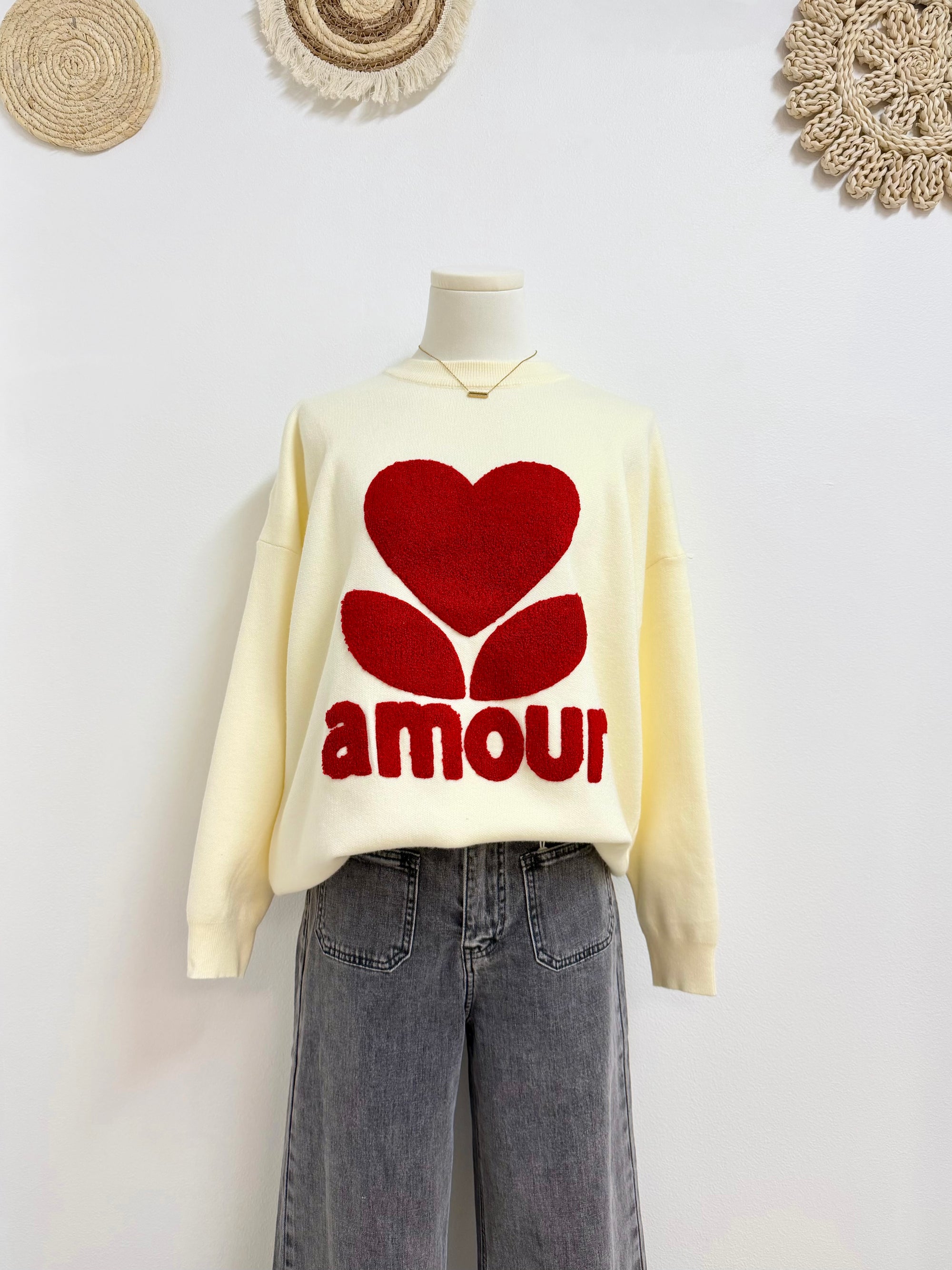 PULL AMOUR ROUGE - ÉCRU