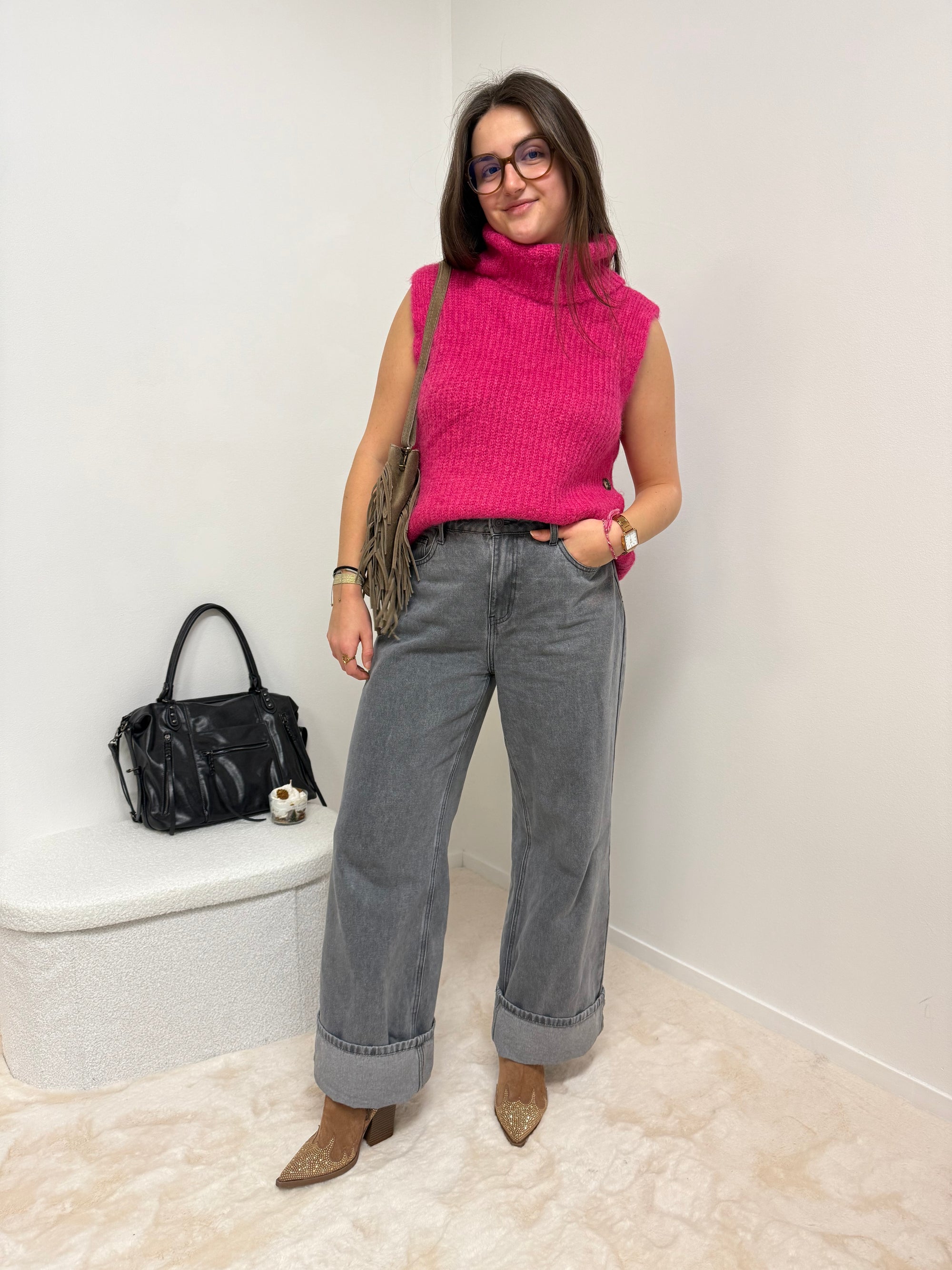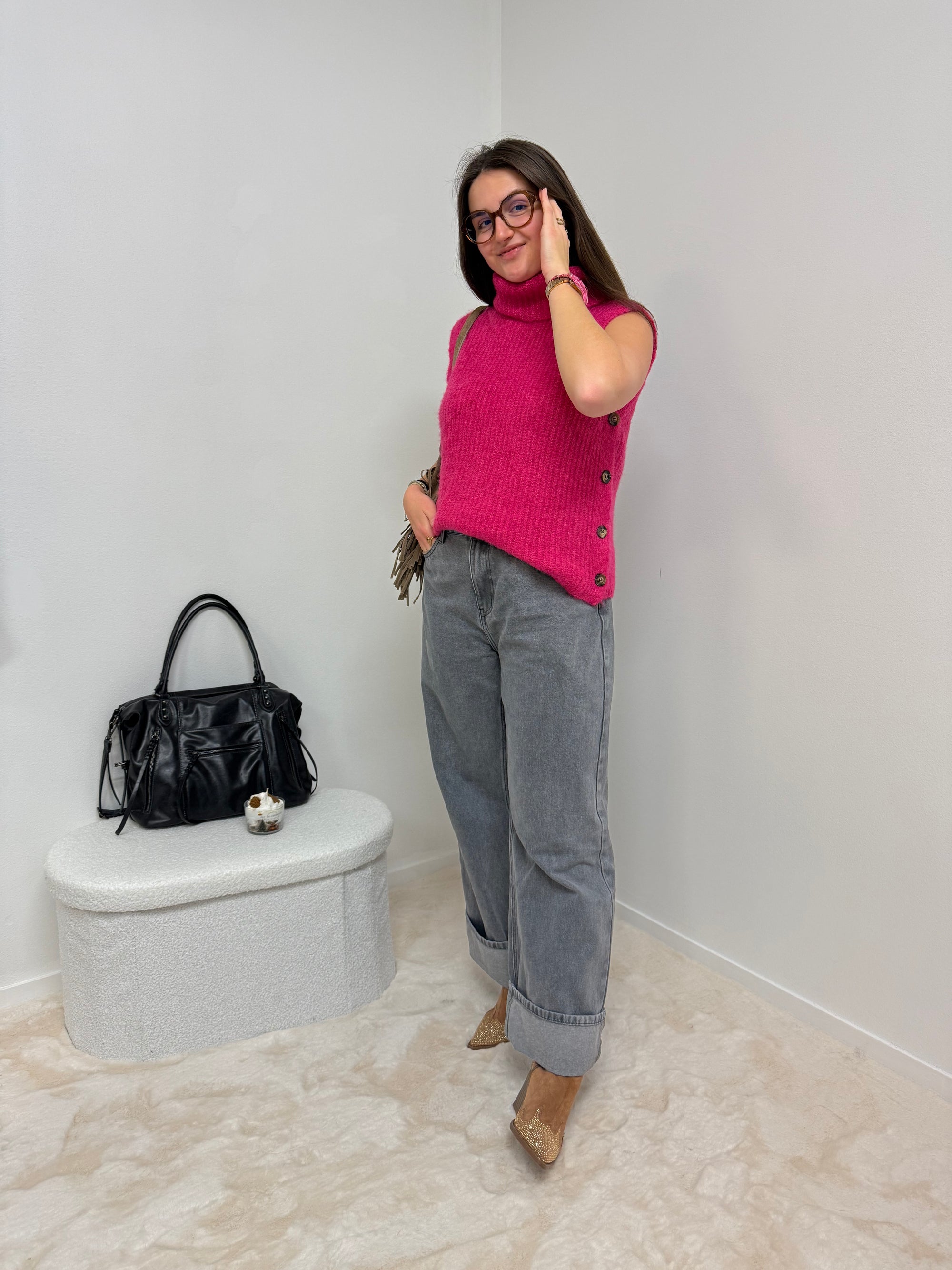 GILET NOEUD FUSHIA