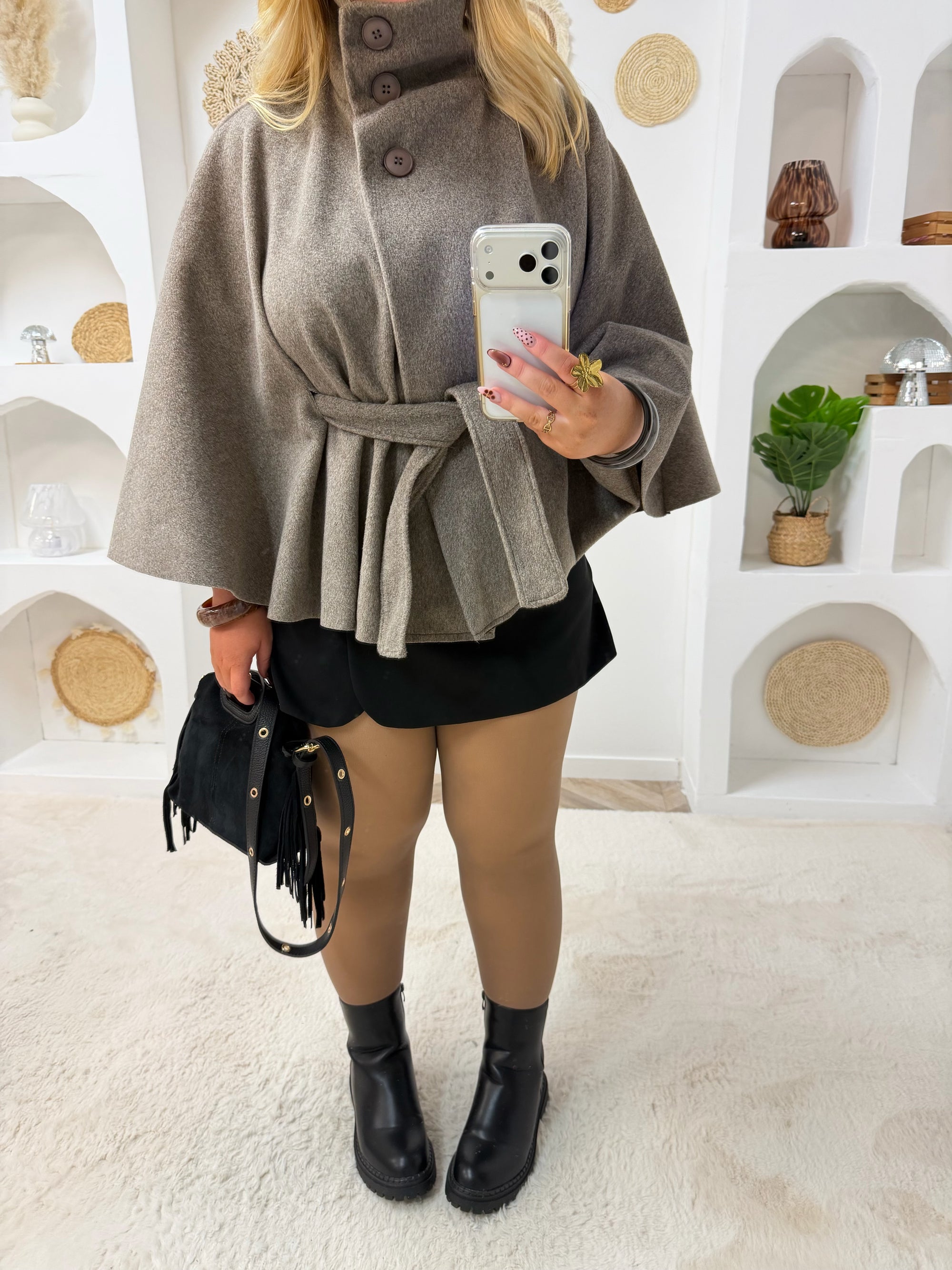 VESTE CAPE LARA TAUPE